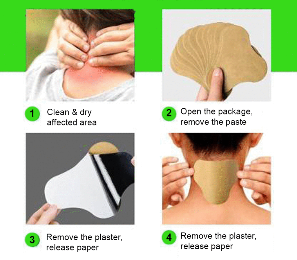 To use Naurify Herbal Patches effectively, follow these simple steps: Prepare: Identify the affected area where you feel discomfort on your neck. Peel: Gently peel off the protective film from the patch, exposing the sticky side. Stick: Firmly place the patch on the targeted area, ensuring it adheres smoothly to your skin. Keep: Enjoy the benefits of the patch for up to 8 hours. After use, remove the patch rom your body.